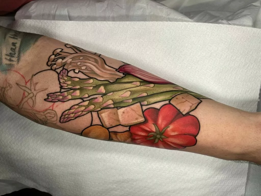 Il mio stile mescola più influenze, dall’Art Nouveau alla pittura, fino ad arrivare a scelte di colore che nascono da sperimentazioni personali. Mi piace creare armonie nuove e dare un senso di dinamismo al disegno, senza perdere di vista la parte emotiva e simbolica che un tatuaggio porta sempre con sé.